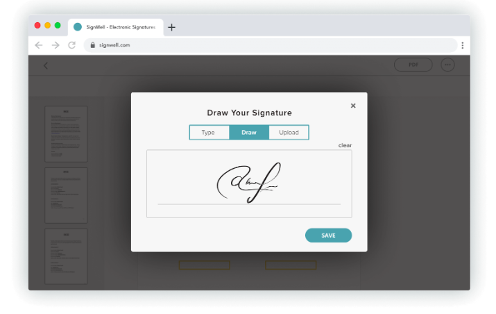 Here’s a sample of Signwell’s eSignature function embedded into a third-party app.