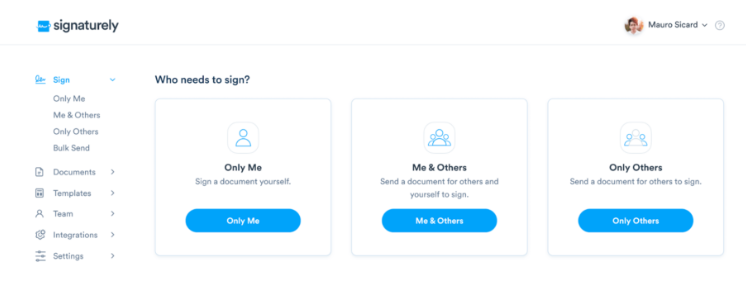 Signaturely is an e-signature tool that features a clean, drag-and-drop signing UI that is easy enough for any client to grasp, even if they aren’t familiar with e-signing.