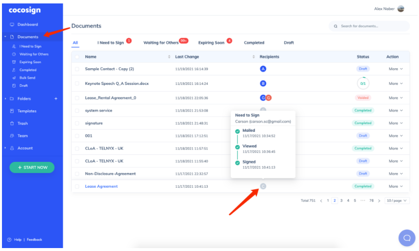 - Document Tracker: Receive real-time notifications for all documents sent for signing. Use the dashboard to view document statuses at a glance.