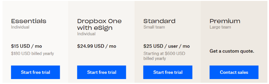 These range from $12.99/month to $19.99/month for individuals and $14.99/month/user to $23.99/month/user for teams.