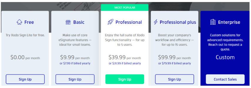 | Eversign Xodo Sign | $20/month | ✅ Yes | ⭐ 4.8/5 | Small teams need document tracking and templates |