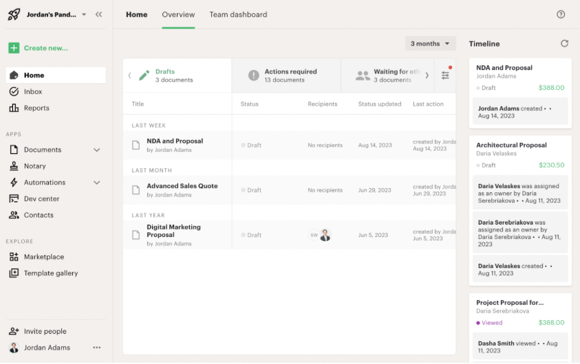 - Templates: Create reusable document templates and share them with your team to save time.