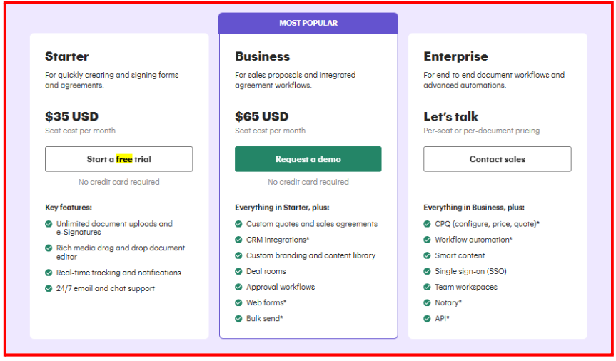 | Conga Contracts | Custom | ❌ No | ⭐ 4.2/5 | Sales-heavy teams need revenue-focused document tools |