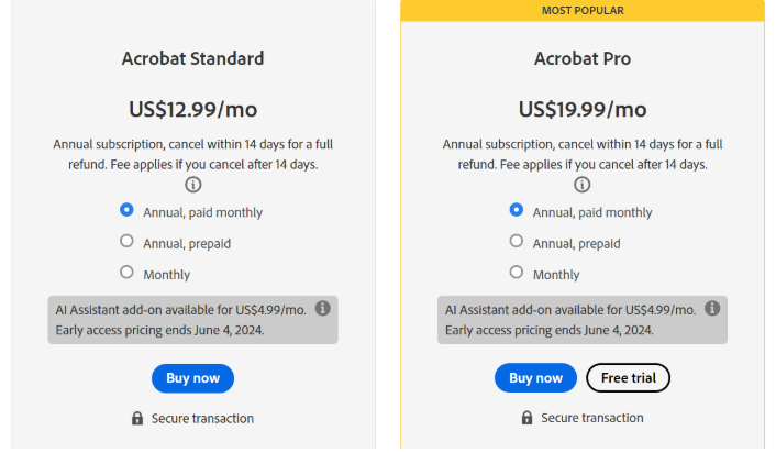Adobe Sign is available with every Adobe Acrobat plan.