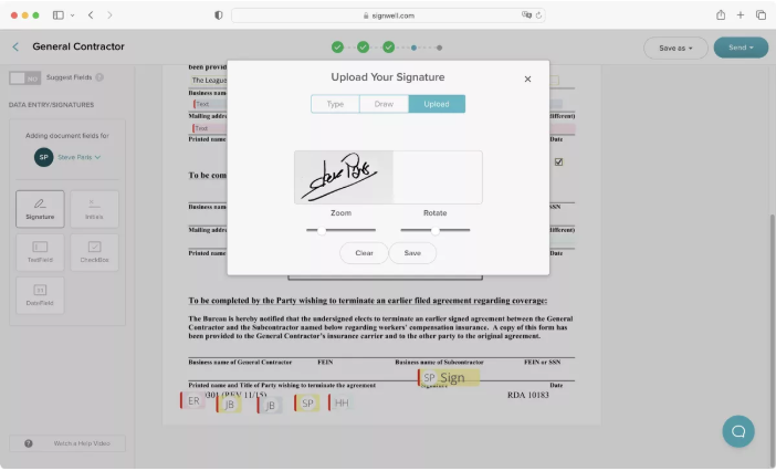 You start by uploading the document that needs to be notarized. This is often a PDF. You may also add the signer’s name, email, and any required signing fields.