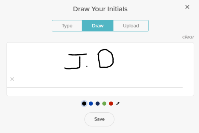 - Draw: Draw your initials using your mouse or touchpad.