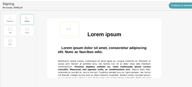 a. After placing your initials, click Continue to Download at the top right corner of the preview page.