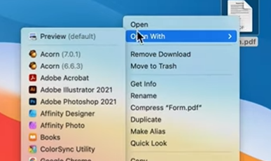- Double-click the file if Preview is set as the default app or right-click, select “Open With”, and choose “Preview”.