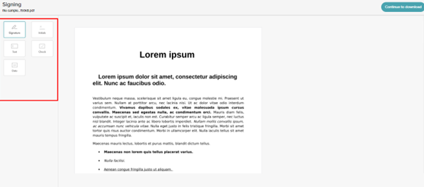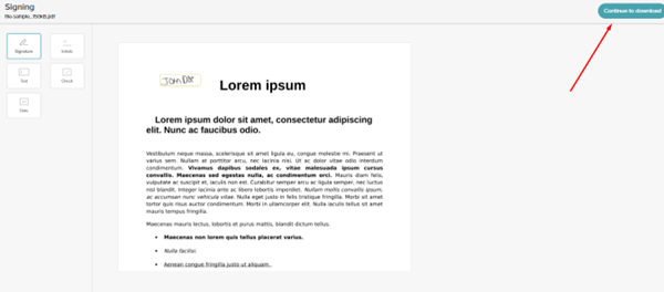 - After placing your signature, click Continue to Download at the top right corner of the preview page.