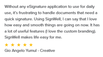 Yes, some electronic signature software has apps you can download. SignWell, however, doesn’t have an app and relies on your regular browser instead. We do this because we’ve found that most people prefer not to download anything. Whether a software requires download may be something to consider, especially when you request signatures; some eSignature apps strongly encourage (and even force) people to download the app just to sign received documents.